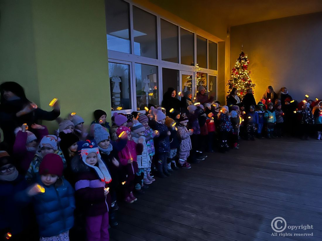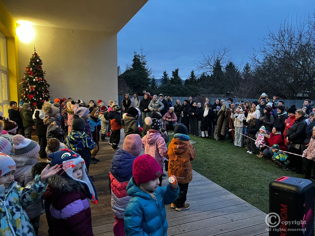 Období Adventu začalo na pracovišti Vrchlického dříve, než bývá zvykem. Ve čtvrtek 27.11. jsme pozvali všechny rodiče k nám na zahradu školy na slavnostní Rozsvícení vánočního stromečku. Akce s názvem a se Cesta do Betléma se nesla v duchu vánočních písní. Po společném nástupu na koledu Půjdem spolu do Betléma, si každá třída připravila vystoupení. Děti z Mrkvičkové třídy zatančily a zazpívaly na píseň Vánoce, Vánoce přicházejí, poté vystoupily děti z Hráškové třídy na připravenou píseň Hajej nynej Ježíšku a vystoupení tříd uzavřely děti z Citrónkové třídy s připravenou improvizací písně Veselé vánoční hody. V letošním školním roce nám program zpestřili praktikantky ze SPgš v Berouně, které u nás provádějí průběžnou praxi svým zpěvem vánočních koled. Na závěr vystoupení zazněla společná píseň Rolničky, při které děti rozsvítily opět svá světýlka, rozsvítil se i stromeček a celá zahrada. Poté se zahrada proměnila ve vánoční jarmark, kde byla pro rodiče a děti bohatá nabídka dekoračních vánočních výrobků a také napečené perníčky a vánoční cukroví, které připravily paní učitelky a asistentky. V chladném nevlídném počasí jsme se zahřáli nealko vánočním punčem, kakaem a k chuti přišla i grilovaná klobáska nebo páreček. Akci jsme si všichni užili a děkujeme všem za účast