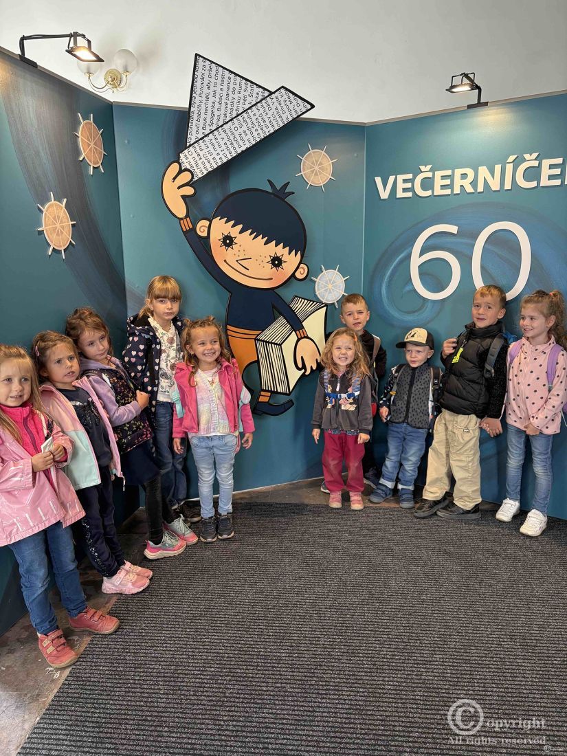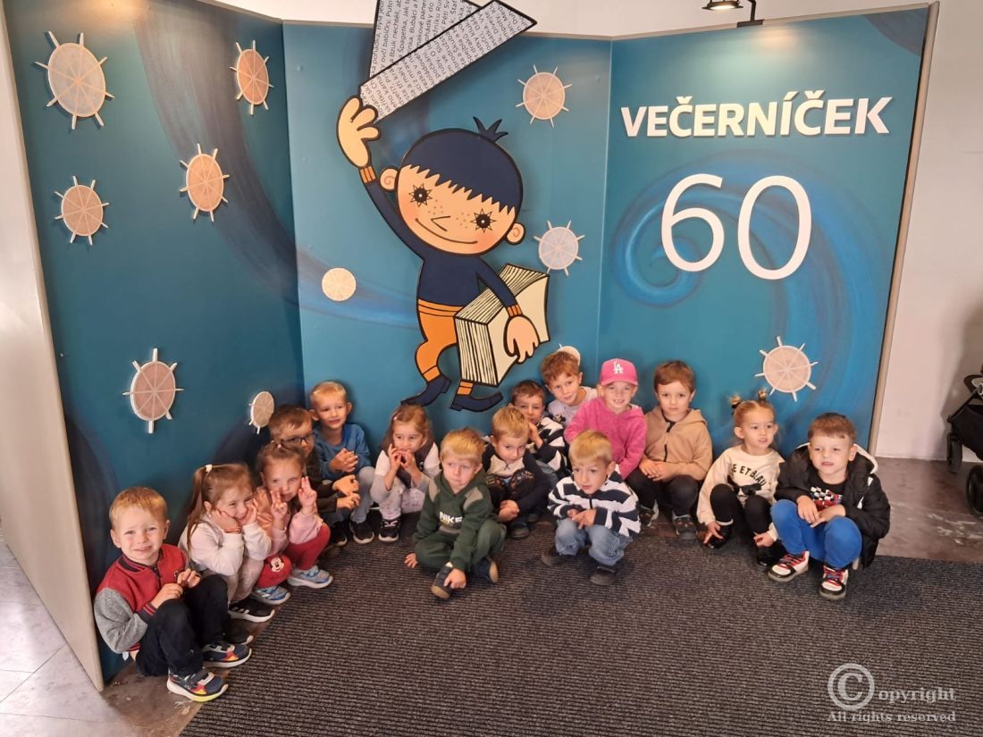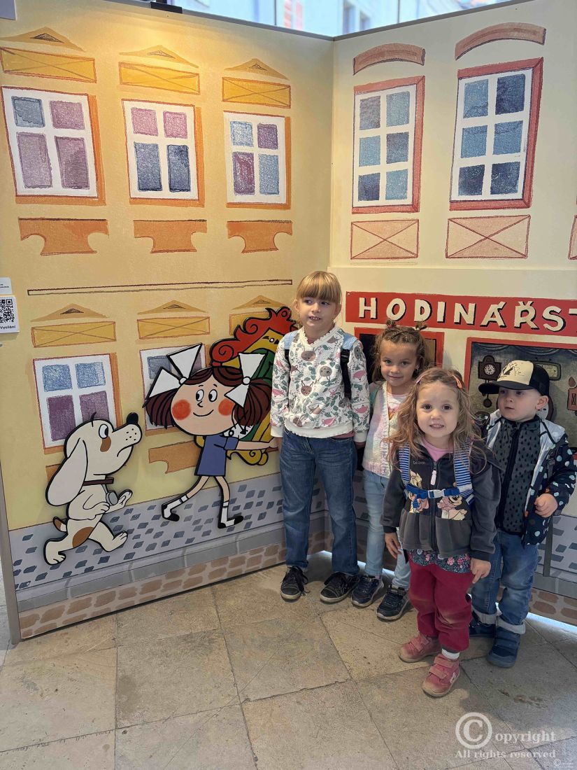 Děti ze Sluníčkové, Kvítečkové a Srdíčkové třídy, navštívily 16. září výstavu Večerníčka ve Strahovském klášteře v Praze.